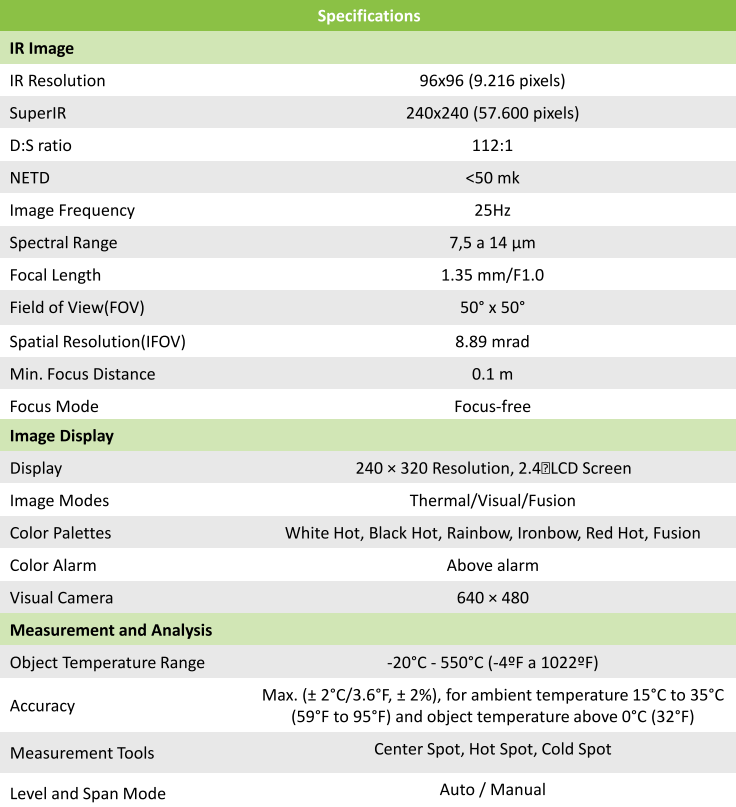 The TherCam96 PLUS is an efficient, cost-effective, and fully equipped infrared camera. This robust and highly practical high-tech system, thanks to its intuitive and one-handed operation, makes it an ideal tool for troubleshooting electrical installations, mechanical components, buildings, process equipment, HVAC/R systems, and more.