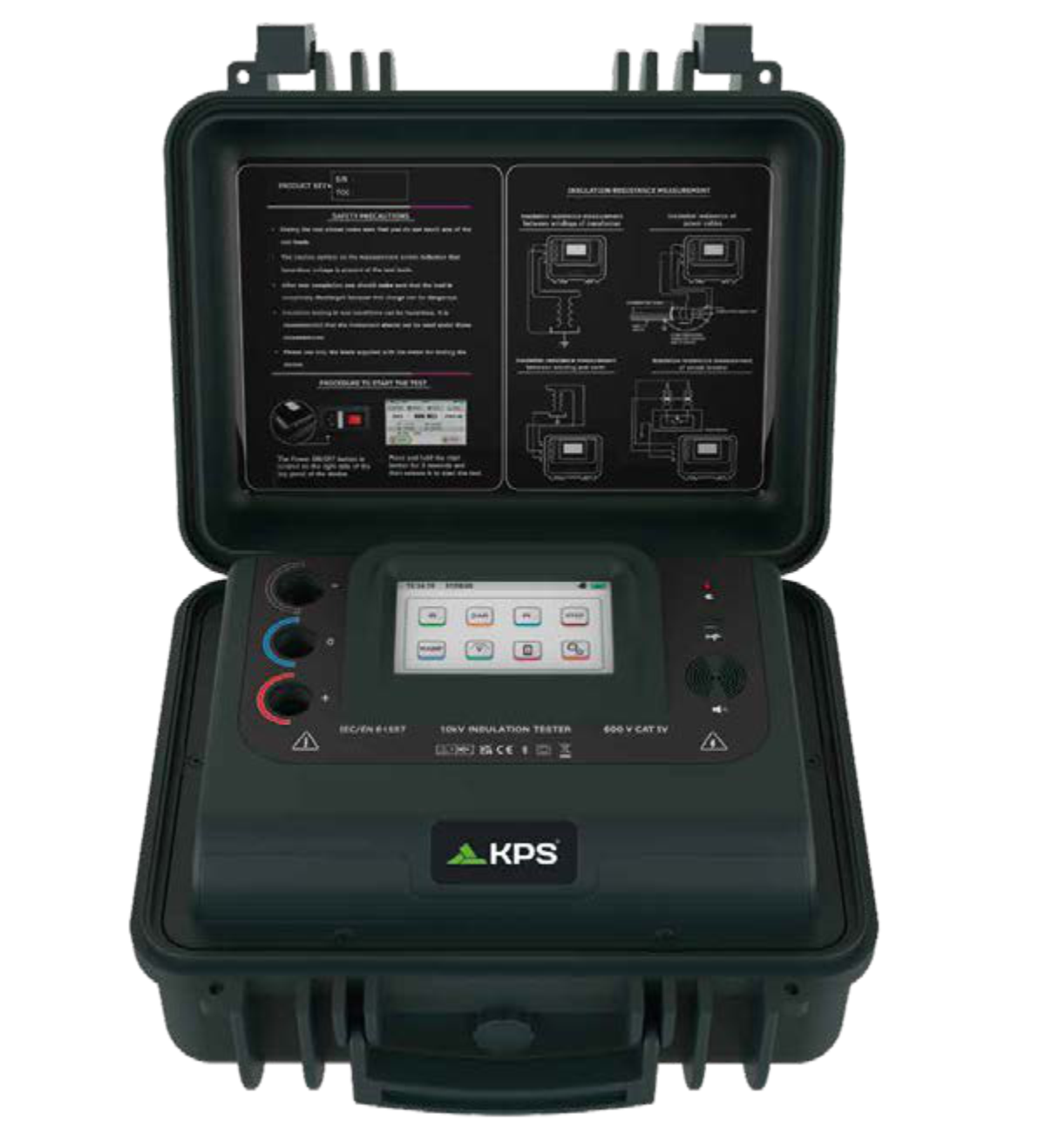 Sus avanzadas funciones, como la conectividad Bluetooth, la lectura de audio y la pantalla táctil TFT en color, hacen que nunca antes haya sido tan fácil de usar. Puede almacenar los datos en su memoria interna con sello de tiempo real. Los datos pueden transferirse a la memoria del ordenador o del teléfono móvil para su posterior análisis. Realiza pruebas como Índice de Polarización, Relación de Absorción Dieléctrica, descarga dieléctrica, prueba de diagnóstico de rampa, prueba de tensión de paso.